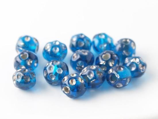 [商品説明] 濃いブルーにシルバーのドットデザインのヴィンテージビーズです。